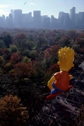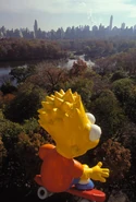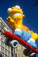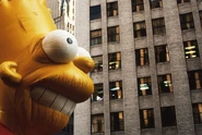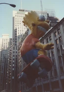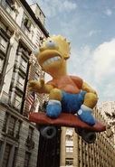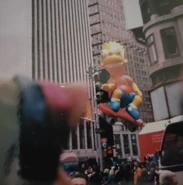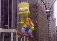 Bart in his test flight. The balloon was made by a different company that had little experience making giant helium balloons like Macy's for the parade, resulting in the patches being very unstable.