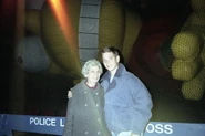 Bart with balloon veteran Woody Woodpecker during a opening of a Macy's Store on September 6, 1992