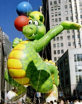 In the wake of Dudley’s popularity in America, a costumed version of the character was brought to New York City for the 1994 Macy’s Thanksgiving Day Parade. For this appearance, Dudley rode alongside Mr. Snail and waved to children in the crowd.