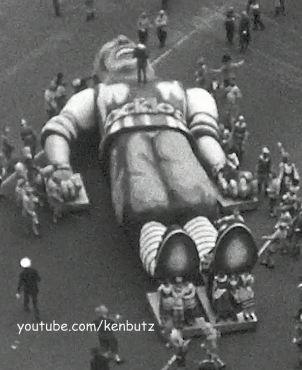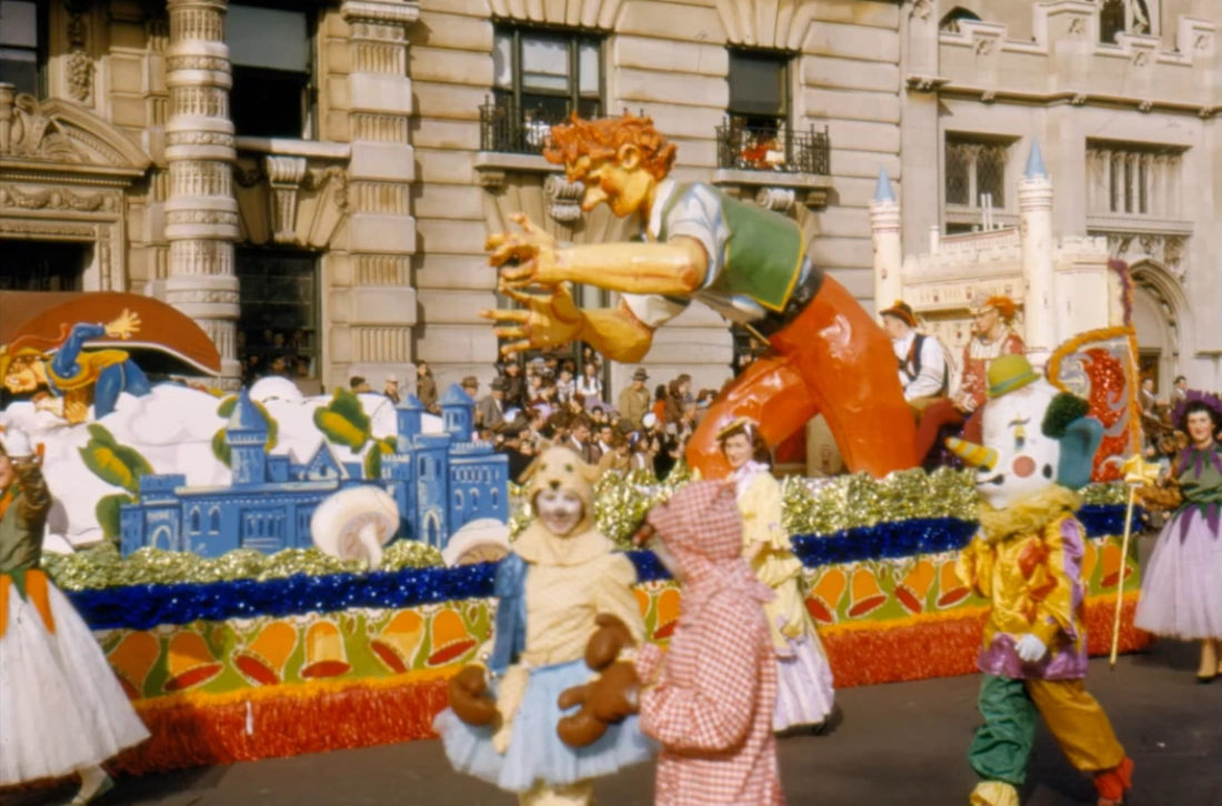 The first float based on fairy tale appeared as a large sculpted giant, rolling on the streets of NYC during the 1936 Parade. Another version appeared in 1940 as the hand of the giant reached out of its pages and its last variant was featured in 1951 and 1952.