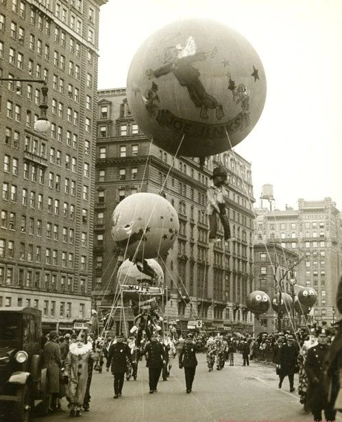 The Joe Jinks balloon first flew its way down the parade route as part of the 1930 parade's lineup, being one of the first pop culture characters to become a giant balloon in the parade's history. Being designed by Tony Sarg, the design was of Jinks hanging from a larger sphere balloon, featured a painted image of himself. The balloon only appeared in the 1930 procession, as it was disposed of shortly after.