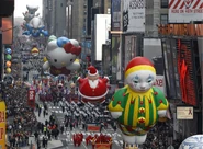 The Pillsbury Doughboy giggles through NYC for the first time, preceding Santa Claus during the 2009 NBC telecast. (Screenshot: NBC)