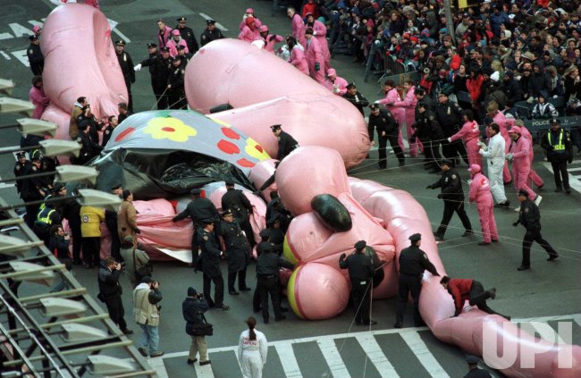 The Pink Panther balloon, pictured here on Broadway, struggled in the winds in 1995.