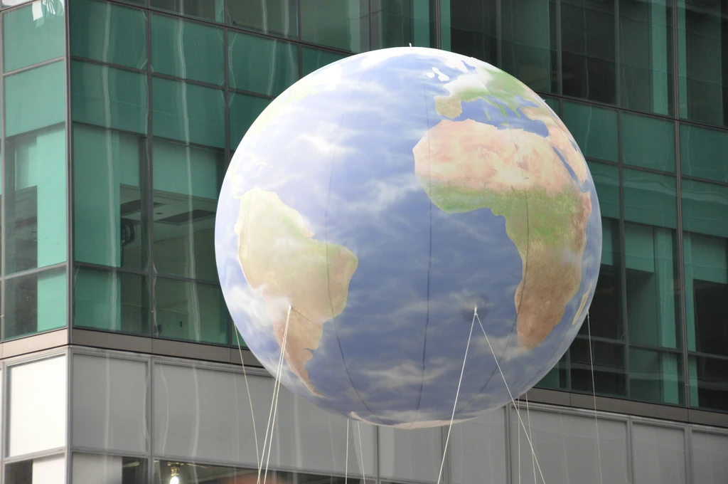 The first Planet Earth novelty balloon was made in the late 1980s. but didn't debut in the Parade until the 70th Anniversary Parade in 1996 and followed the Big Apple float in the route to 34th Street. Little is known about this balloon, other than an appearance in a photo at Macy's Parade Studio. It is known to have only appeared that year and was retired.